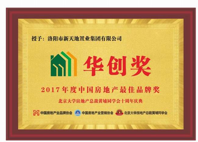 作為洛陽地產(chǎn)行業(yè)的領(lǐng)軍人物,新天地集團(tuán)不負(fù)眾望,憑借雄厚的品牌實(shí)力和***產(chǎn)品的成功塑造,以及董事長(zhǎng)張夢(mèng)留的個(gè)人魅力,斬獲“華創(chuàng)獎(jiǎng)?2017年度中國(guó)房地產(chǎn)***佳品牌獎(jiǎng)”和“華創(chuàng)獎(jiǎng)?2017年度中國(guó)房地產(chǎn)***企業(yè)家獎(jiǎng)”雙桂冠。